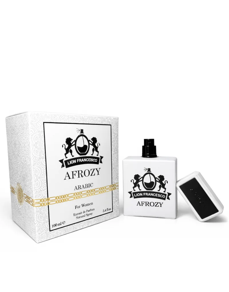 AFROZY Arabic Extrait de Parfum egy kivételes illat nőknek afrodiziákumokkal és feromonokkal gazdagítva. Egy intellektuális illat bohém és kreatív nőknek, keretek nélkül, szavakkal játszva, modern vonalakat alkotva. A klasszikus és kortárs költészet az életünket színesítő egyetemes érzéseket írja le, művészileg a képzőművészetet és az irodalmat ötvöző stílusban.